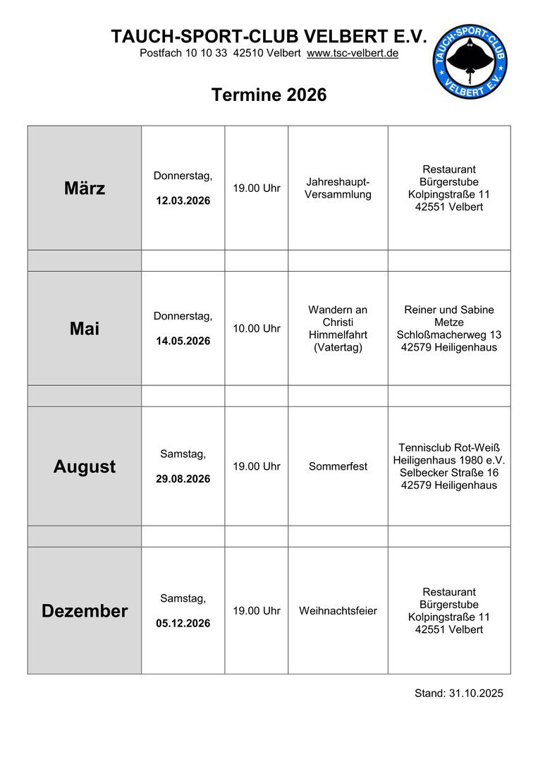 - Einladung zur Weihnachtsfeier für den 29.11.2025; Info bitte bis zum 15.11.2025 an den Vorstand
